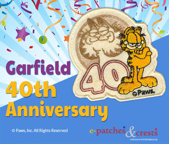 Garfield is turning 40! That means that the first comic portraying this lovable, overweight house cat came out on June 19th, 1978. Look how different the style was! Join us in celebrating Garfield's big day with the Garfield 40th Anniversary patch.